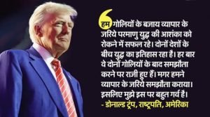 “मैंने दोनों देशों को पीछे हटने के लिए राज़ी किया। अगर मैं नहीं होता, तो यह न्यूक्लियर वॉर होता,” – डोनाल्ड ट्रम्प