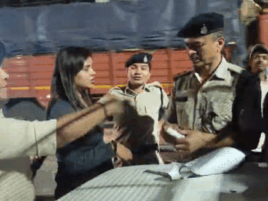 गिरने के बाद पुलिस पर भड़की युवती